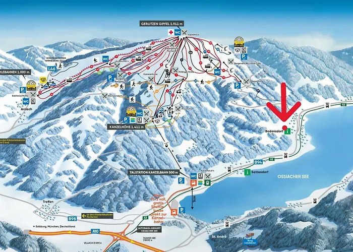 Daire şehir merkezine 5 dakikalık yürüme mesafesindedir. Bu daire Gerlitzen'a kısa sürüş mesafesindedir.